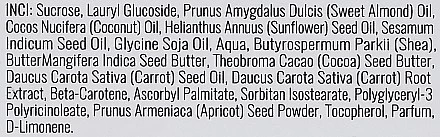 Appliquez une petite quantité de gommage sur la peau humide, massez longuement, puis rincez abondamment à l’eau chaude. Après avoir séché votre peau, faites pénétrer uniformément le beurre corporel de la ligne Sun 4 Everyone dans la peau.
