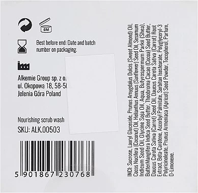 Le gommage My Precious de la société Alkmie est développé à partir de composants provenant de la nature qui vous permettent d’obtenir une peau veloutée et souple. Les particules de sucre et la poudre de noyaux d’abricot au sein de la composition fournissent une action exfoliante délicate et facilitent la microcirculation. L’application régulière du gommage assure le renouvellement de l’épiderme et lisse la peau. Les beurres de karité, de mangue et de cacao dans la contenance renforcent la structure cutanée, nourrissent l’épiderme et améliorent la résistance de la peau face aux facteurs nuisibles de l’environnement.